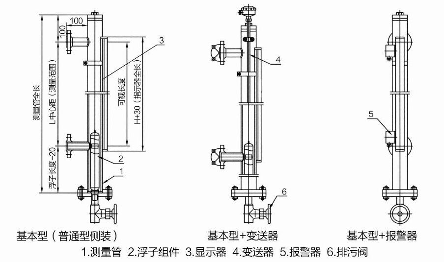 由連通器、主導管、磁性浮子、現(xiàn)場指示牌,及捆綁式液位變送器或液位開關組成。